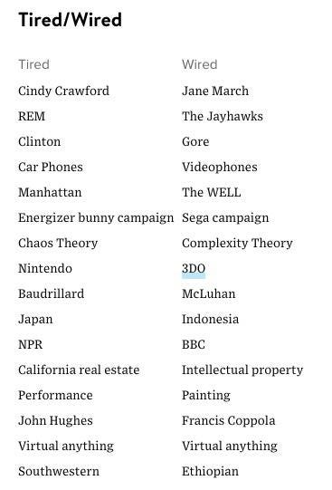 This is an old meme pioneered by Wired Magazine; here was their list in 1993: